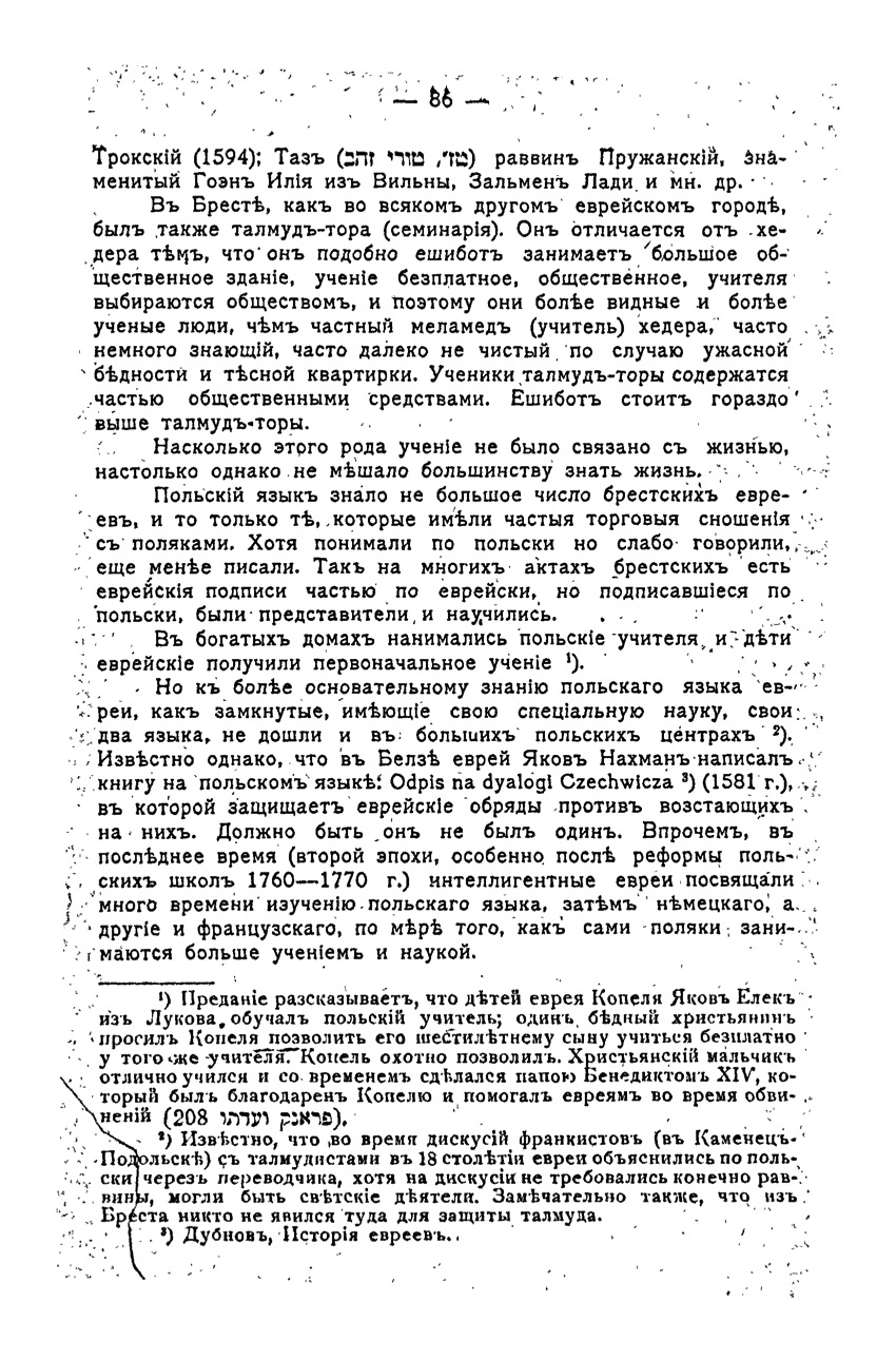 (2) It is known that during the discussions Franco (in Kamenetz-Podolsk) with Talmudic in the 18th century, Jews were explained in Polish, through an interpreter, although discus not required, of course, the rabbis could be secular figures. It is also remarkable that from Brest nobody was there to protect the Talmud.