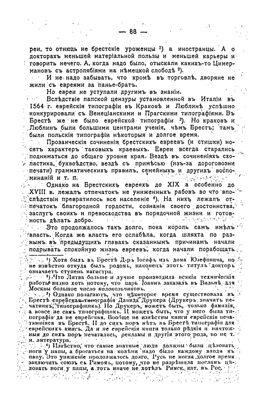 (3) However, believe that some time existed in Brest Jewish printing house of David Drucker (Drucker means printmaker, owner of a printing). But Drucker, perhaps, only the name, not the printer itself. And can a life that he was printing, but not Jewish. No known Jewish book printed in Brest. And still no printing in Brest Jewish books. And not only rare Jewish books and insignificant still printed, advertising and other this kind, but there is what is called literature.