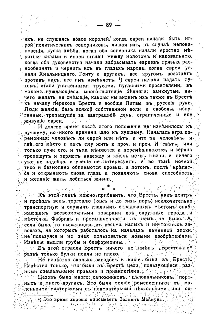(1) Jews began to lose heart, become humiliated cowards, fearful asylum in a small need, many flattering poor; closed, not daring to wish anything, what we also see them in Brest, Brest move to the top and all of Lithuania in Russian hands. People are pathetic without his own will and freedom, frightened, trembling for tomorrow, limited and barely living Jews.