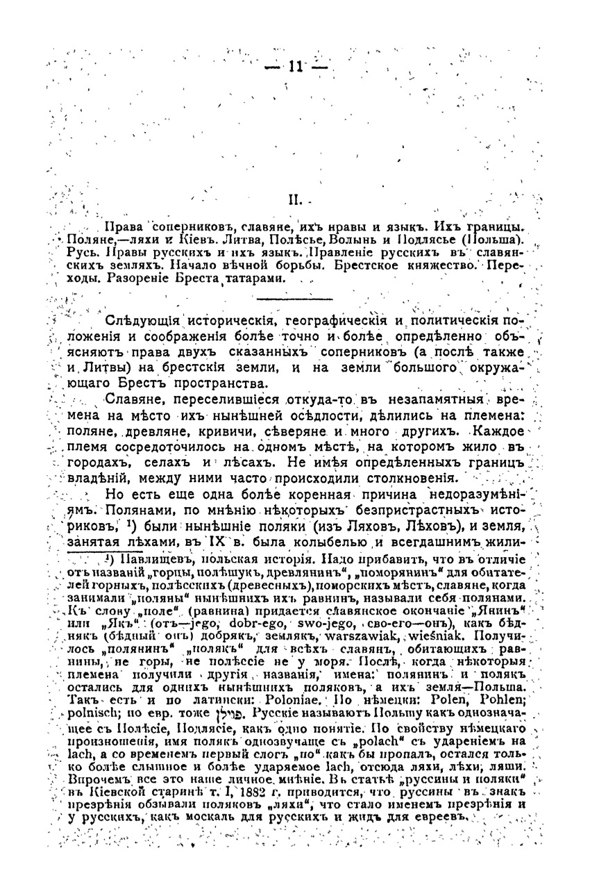 {11} [Chapter Keywords:] Rights opponents, Slavs, their customs and language. Their boundaries. Poliane, Poles and Kiev. Lithuania, Polessye, Volyn and Podlasie (Poland). Russ. Russian manners and their language. Russian reign in the Slavic lands. Starting eternal struggle. Brest principality. Transitions. Busting Brest Tatars.