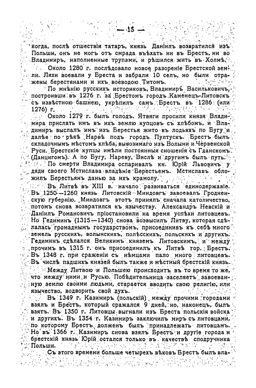 15} when, after the departure of the Tatars, Prince Daniel returned from Poland, he could not have the stench rode any Brest, nor in Vladimir, filled with corpses, and decided to live “in the Helm.”