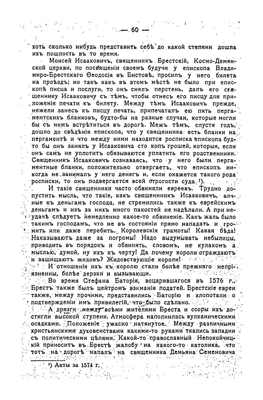 Moses Isaacovich priest Brest, Cosmo Demyansk church for its dedication to being the Bishop of VladimirBrest Theodosius in Bistove, asked him for a ticket to travel; but since this place was not under Bishop scribe and servant, he took off the ring and gave it to the priest Isaakovich in order to relate it to the scribe to the ticket printing applications. Meanwhile Isaacovich before one scribe to bring printing, pinned her five parchment forms, though, would be for different occasions, which could meet him on the road. Meanwhile, a year later, came to the attention of the bishop that the priest has forms on parchment and between them is the receipt of the bishop if he borrowed from Isaakovich one hundred cop groshi, that if he fails to pay his relatives are obliged to pay.
