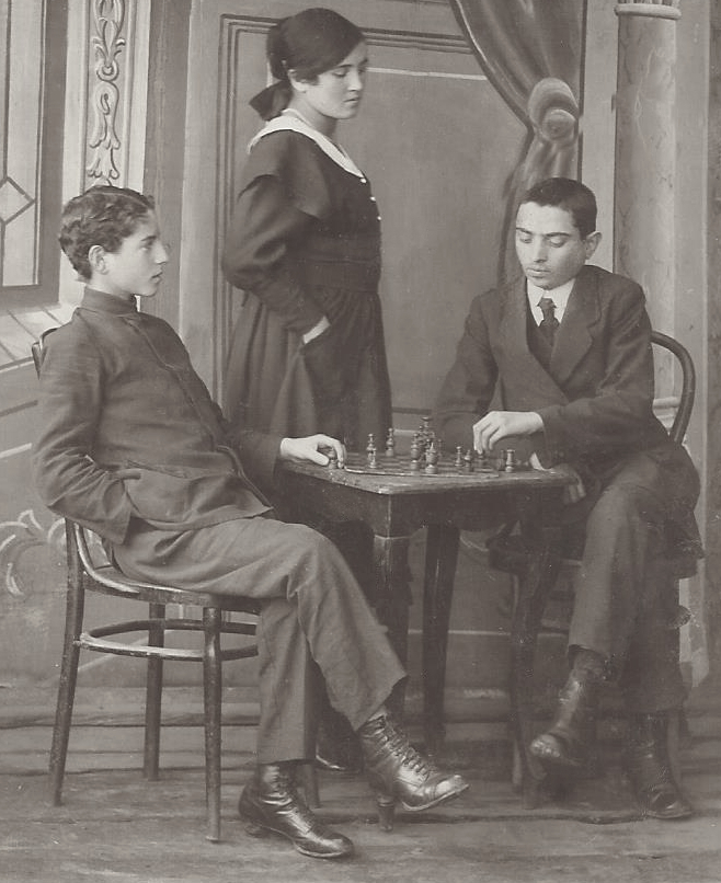 From right to left: Baruch Meir’s son, Moshe Aharon Rozenblum, later changed name to Hebrew Khavatzelet; Henya Rozenblum, daughter of Baruch Meir; Shlomo Lebenglik, grandson of Baruch Meir.