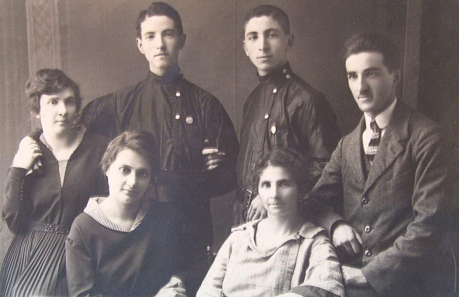 Sitting from right to left: Lea-Michla Lebenglik, née Rozenblum; Belsha Rozenblum, née Zonshtein; Hannah Holtzman, née Rozenblum.