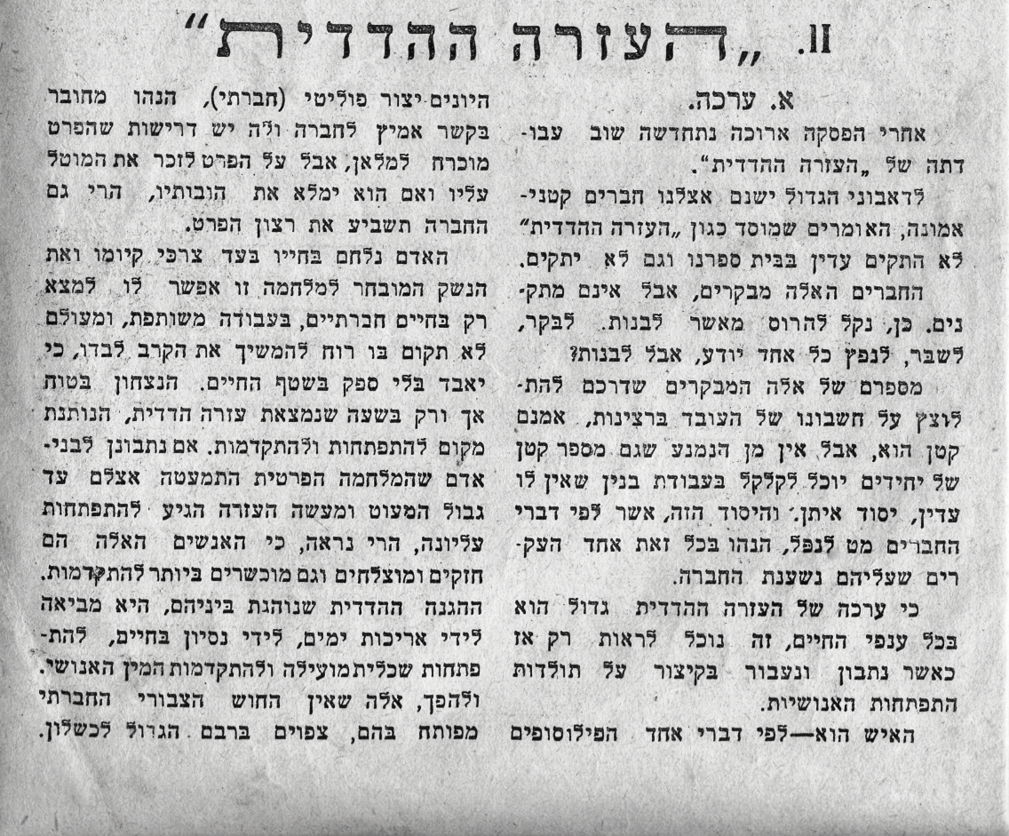 Elka Krein, the author of one of two articles on mutual aid, was secretary of the 3 members council of the 7th grade -- the 3rd, next-to-last year of the Tarbut Gymnasium