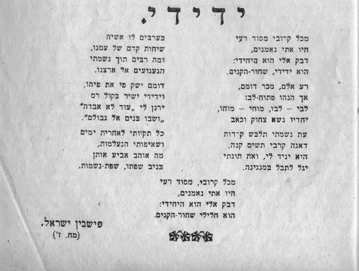 A poem of warm friendship and trust – with a twist – by Israel Fishbein, a student in the 7th grade, the next-to-last year of the Tarbut Gymnasium