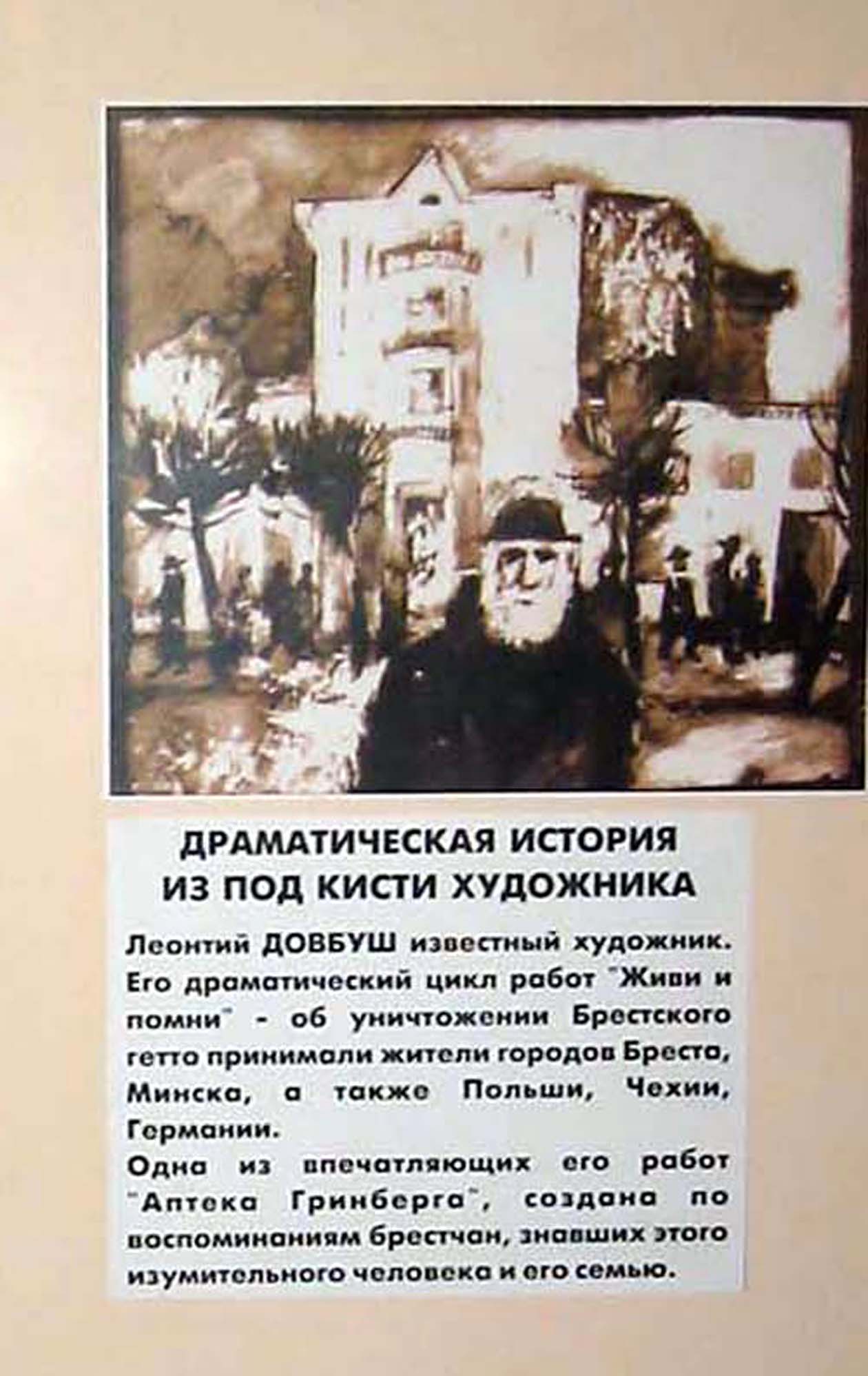 Residents of the cities of Brest and Minsk, and also ?Pal'sha?, ?Chizin?, and ?Gormanny? received his dramatic cycle of works, "Live and Remember", about the destruction