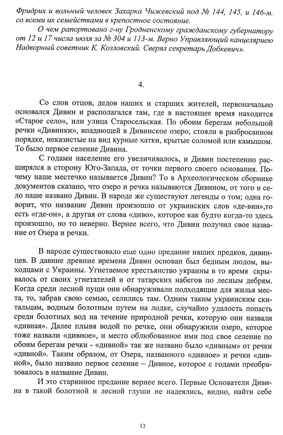 In 1795, Russia was ruled by the Empress Catherine II. She gifted Divin and all of its inhabitants to Field Marshal Rumyantsev. After some time, he sold Divin to his manager Paul Yagmin. After the death of P. Yagmin, these belongings were inherited by his nephews. In the life of Rumyantsev and leadership of Yagmin, there was an acting magistrate. Divin people were relatively free in that time. However, when the lands fell into the hands of the heirs, they began to consider all Divin people their serfs. They demanded of them typical serf duties. In 1817, the villagers submitted a complaint to the Senate of the Russian Empire: they petitioned for the protection of their freedom and rights.