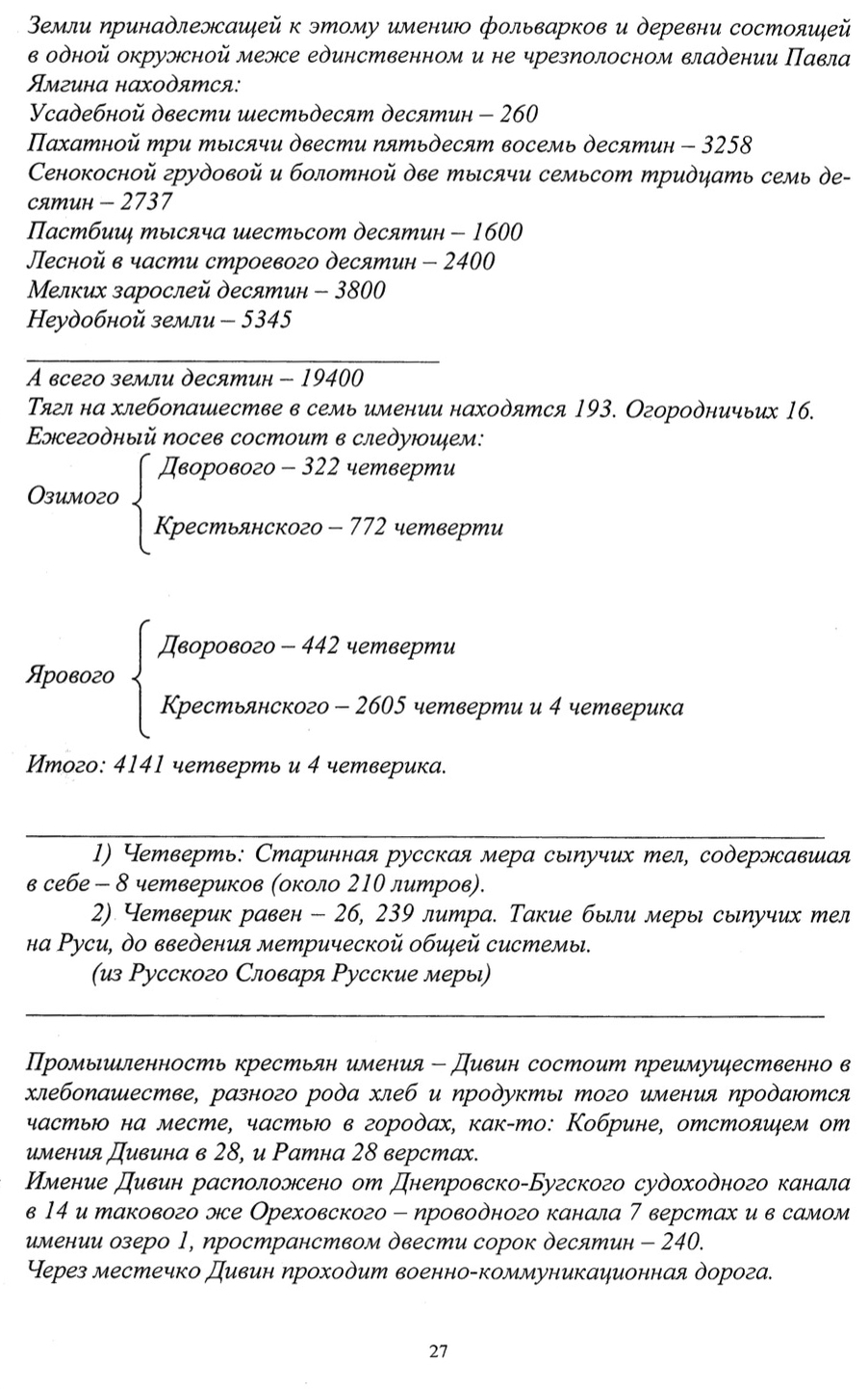 The author quotes a dictionary of Russian measurements to explain the archaic land mesures: