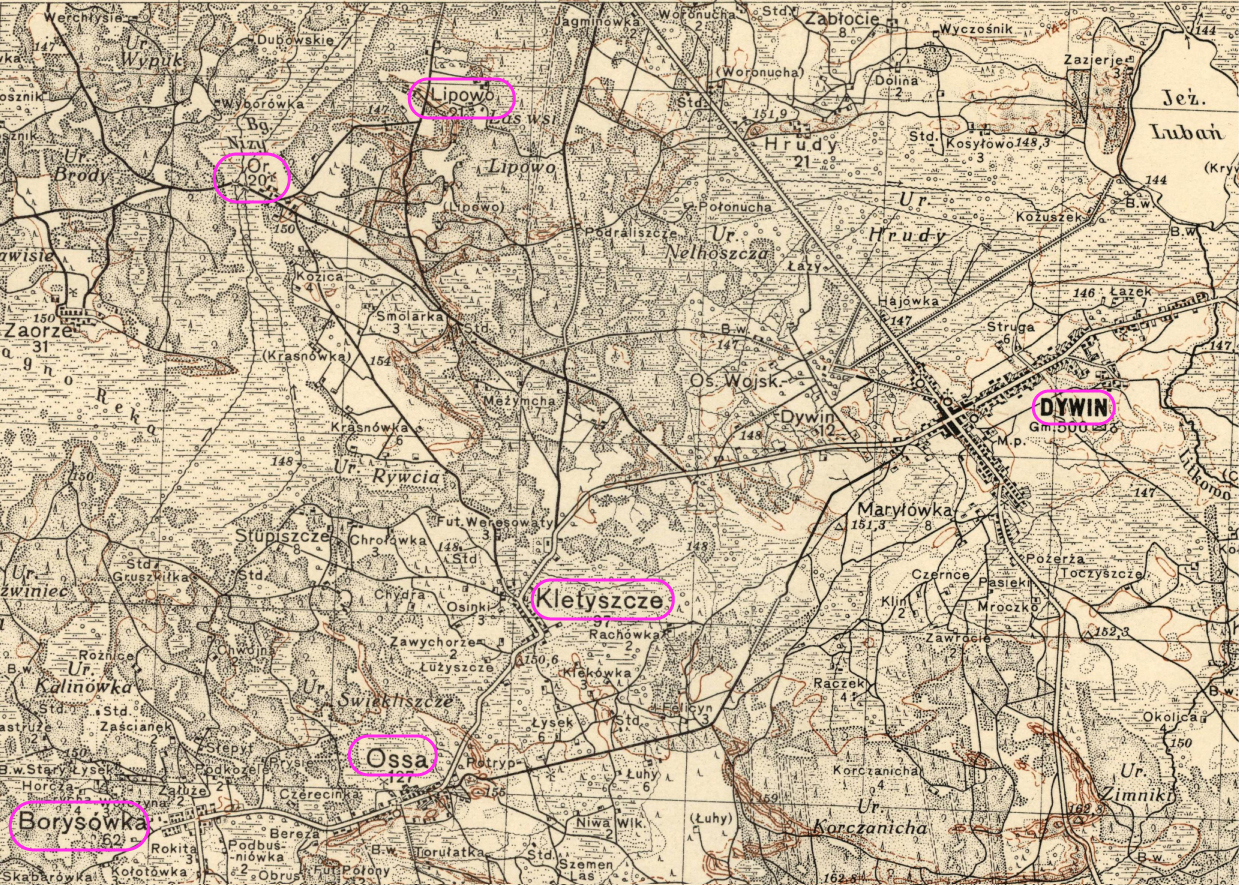Marked: Lipovo, Or, Kletische, Ossa, Boriskovka, Divin