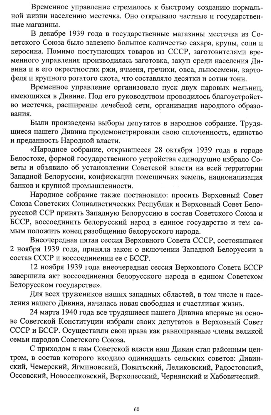 With the advent to us of Soviet rule, our Divin became the center of a district whose composition included eleven rural councils: Divin, Chemer, Yagminov, Povit, Lelikov, Radostov, Ossov, Novoselkov, Verholes, Chernyan, Habovichev. {