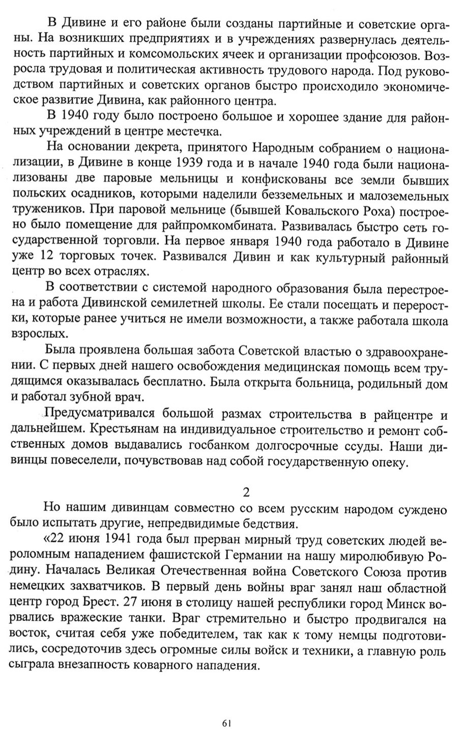 On March 24, 1940, all of our Divin workers, for the first time on the basis of the Soviet Constitution, elected their deputies to the Supreme Soviet of the USSR and the BSSR. They exercised their rights as equal members of the great family of the peoples of the Soviet Union.