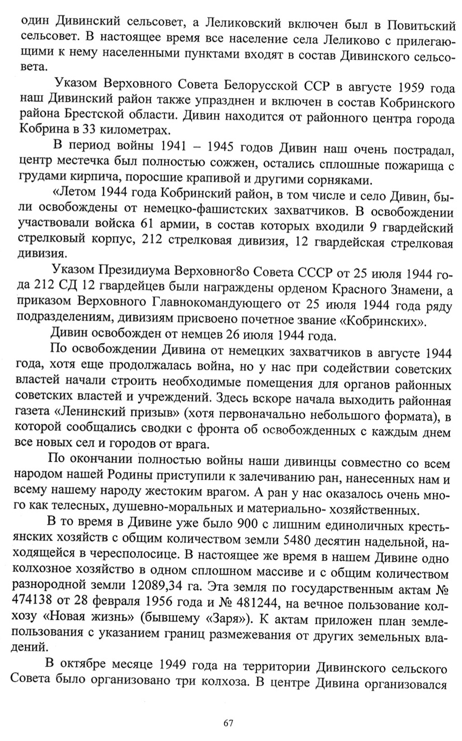Through a decree from the Supreme Council of the Belarusian SSR, in August of 1959, our Divin’s district was also abolished and included into the Kobryn district of the Brest Province. Divin was located 33 kilometers from the district center of Kobryn.