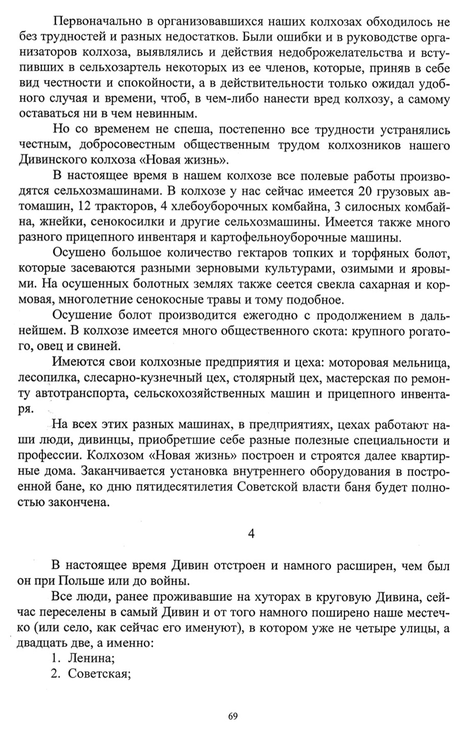 Our Diviners received many useful specializations. This allows people to work in a profession at the collective farms. The collective New Life built several apartment houses with their own amenities for its collective farmers. The plan is to continue these constructions. There is a constructed bathhouse in the collective, in which the installation of internal equipment is being finalized. All of the work is set to be completed by the 50-year anniversary of Soviet rule (in 1967).