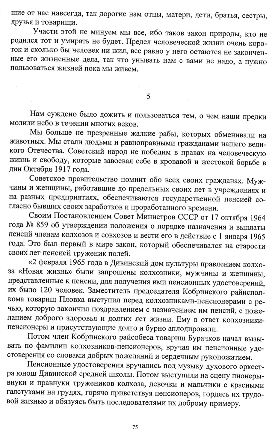 As a gray-haired old man, I often recall my past life. It had its share of happy days, but our years of youth were spent the same as were our fathers’ and grandfathers’: in hard labor and perpetual worries. Our children and grandchildren have a different life. They cannot imagine that we lived without electricity, buses, radio receivers, televisions, gramophones, refrigerators, washing machines, motorcycles, cars, and even more so airplanes and helicopters. When we tell them about our previous life, our kids, grandkids and other young people either do not believe us or do not want to understand us. They look at us with suspicion, as if at people from some other planet.