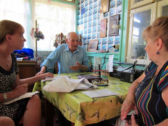 | Talking with Mr. Afanasiy, our interpreter in foreground |