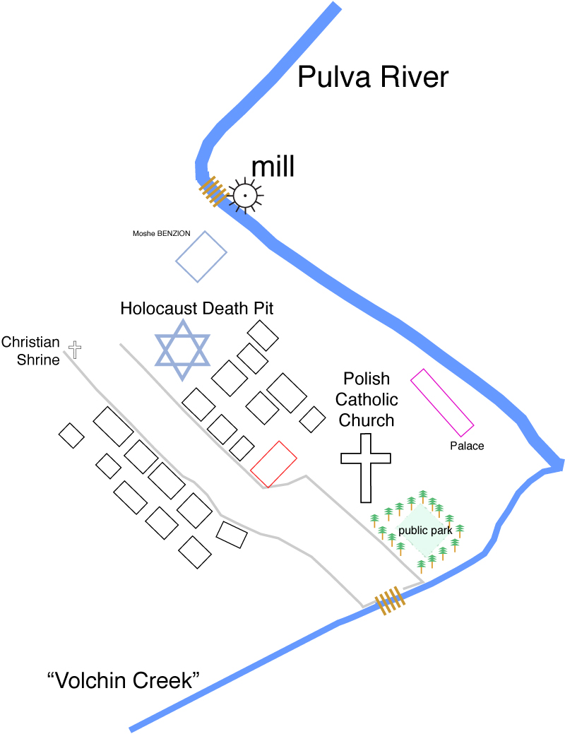 | Editor's Notes: Christian Shrine: In neighboring Wysokie Litewskie, a roadside shrine existed at the western limit of the town, a predominately Polish area. That shrine still exists. The current condition of the Volchin shrine is unknown. |